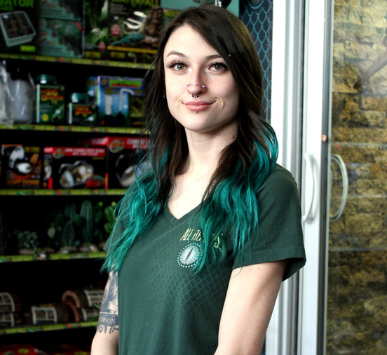Karli is a long time veteran here at All Reptiles. She is just as enthusiastic working with reptiles today as she was on her first day here in 2013. Karli is known for her bubbly yet fearless attitude towards anything with scales, teeth, fangs, fur, stingers, feathers, or a tail. As with all other staff members here, Karli is a natural animal lover and is an avid horseback rider outside of working with reptiles and more recently has started working with birds of prey as well. For as long as we have known her, she has always had long term goals in the animal industry and an impressive resume to back it up with. Although she no longer works daily salesfloor shifts in the shop, Karli is still heavily involved in our special events including reptile presentations, corporate events, and specialty animal handler requests!