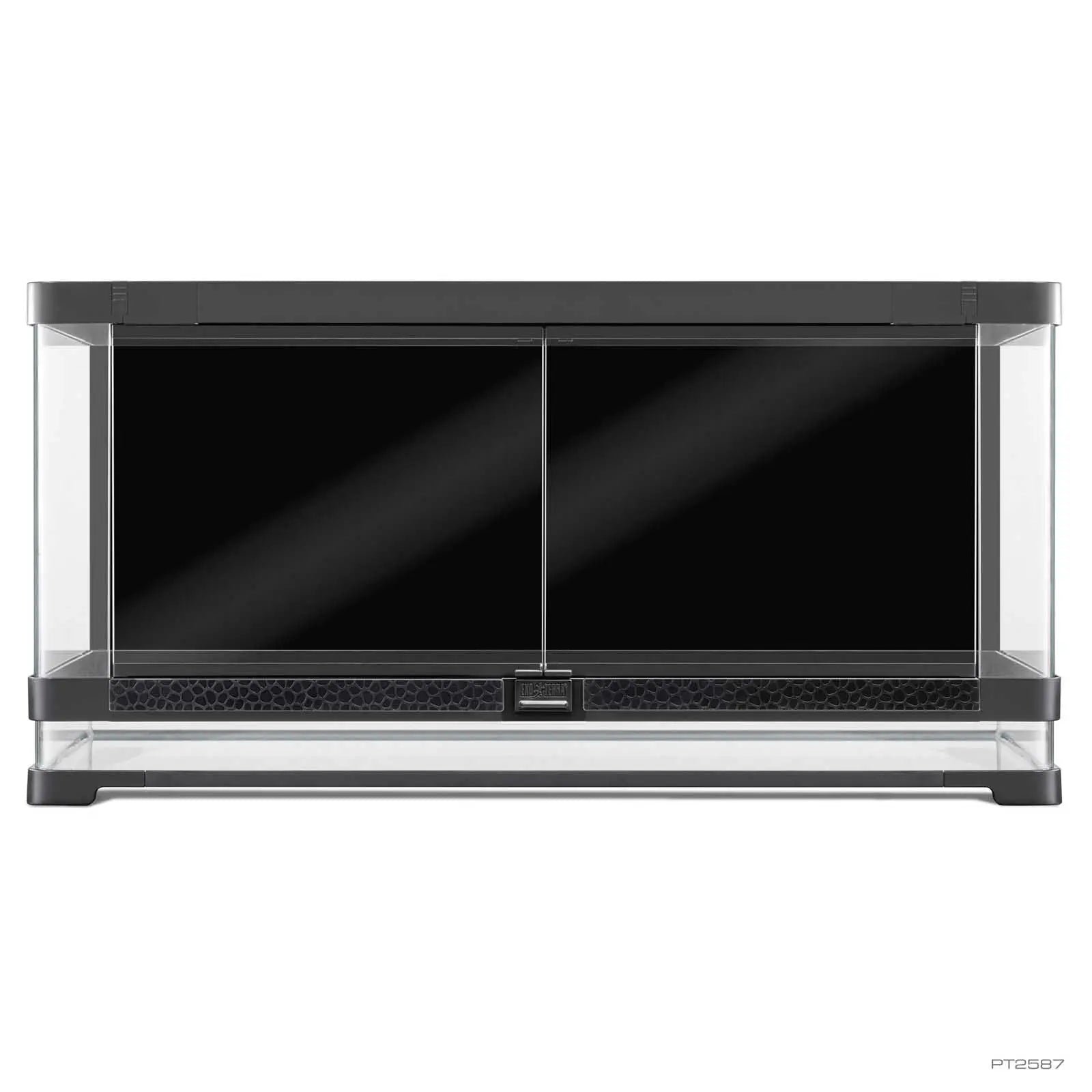 The Vista’s signature adjustable front window ventilation not only ensures a steady upward flow of fresh air into the terrarium, it also assists you in regulating both temperature and humidity levels within the terrarium. The improved air circulation is crucial for the respiratory health of reptiles and amphibians, and helps keep the front glass free of condensation, even in humid conditions.